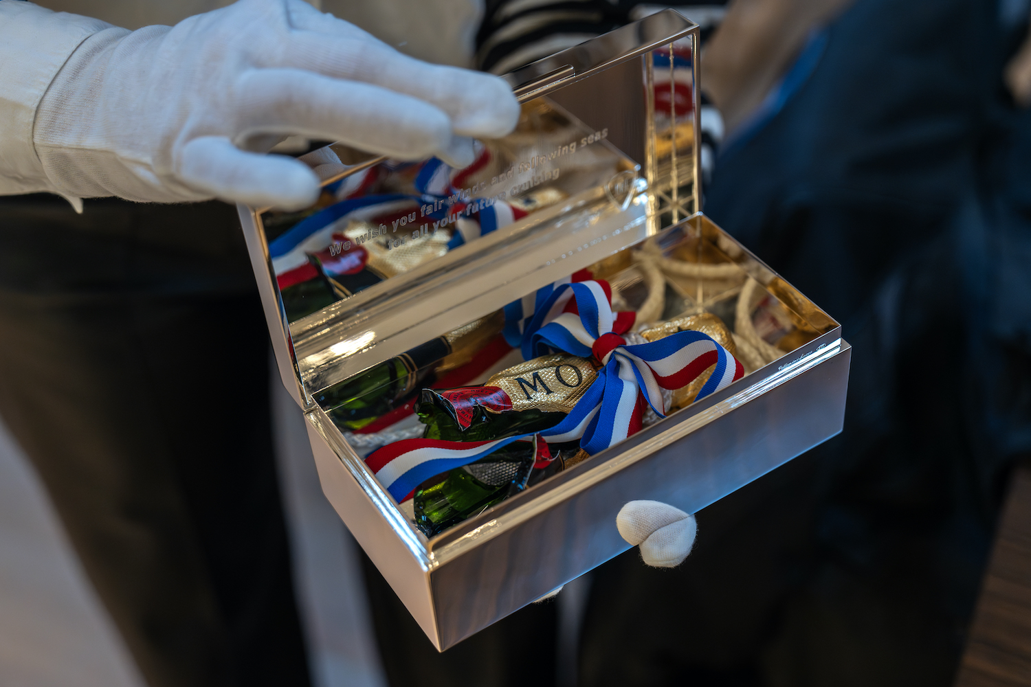 A particularly captivating element of the yacht’s design is the main staircase, which has been redesigned to make a striking visual statement. Adorned with acrylic panels embedded with gold flakes and crystals, the staircase creates an enchanting visual experience, offering a touch of glamour and luxury as guests move through the yacht.