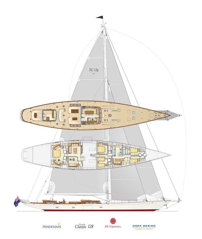 Launched in 2018, 39.4m/128ft sailing yacht VIJONARA as completed her sea trials and is now with her lucky owner. She is the second hull in the Truly Classic 128 series built by the British yard Pendennis. Designed by inside and out by Hoek Design, this yacht was built for an experienced yachtsman, who worked closely with the designers.