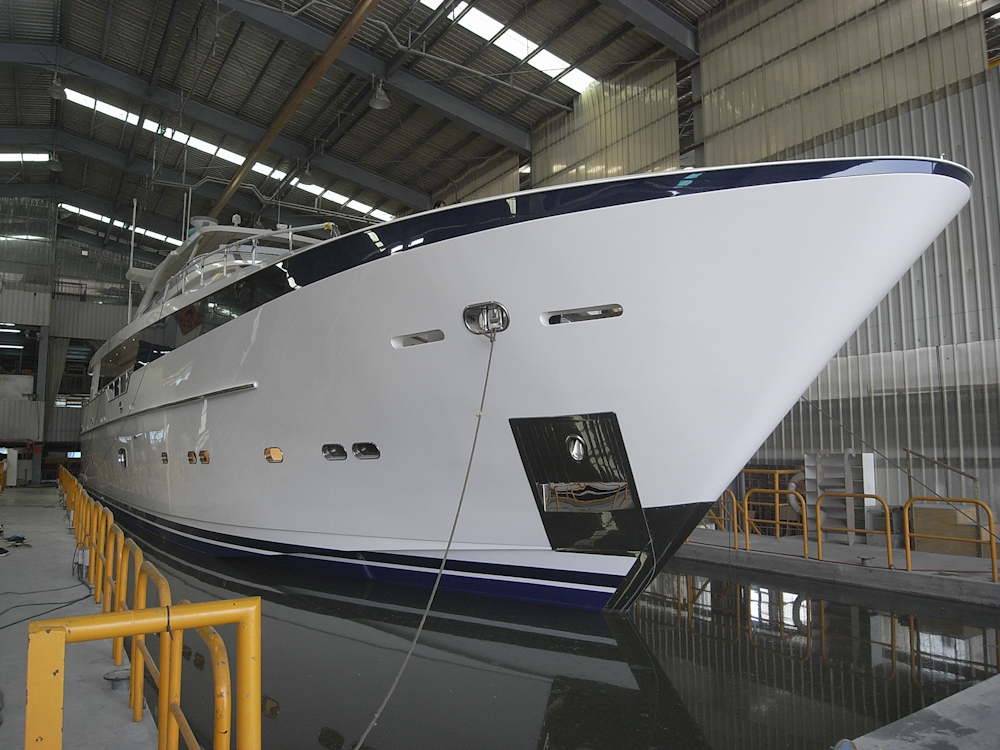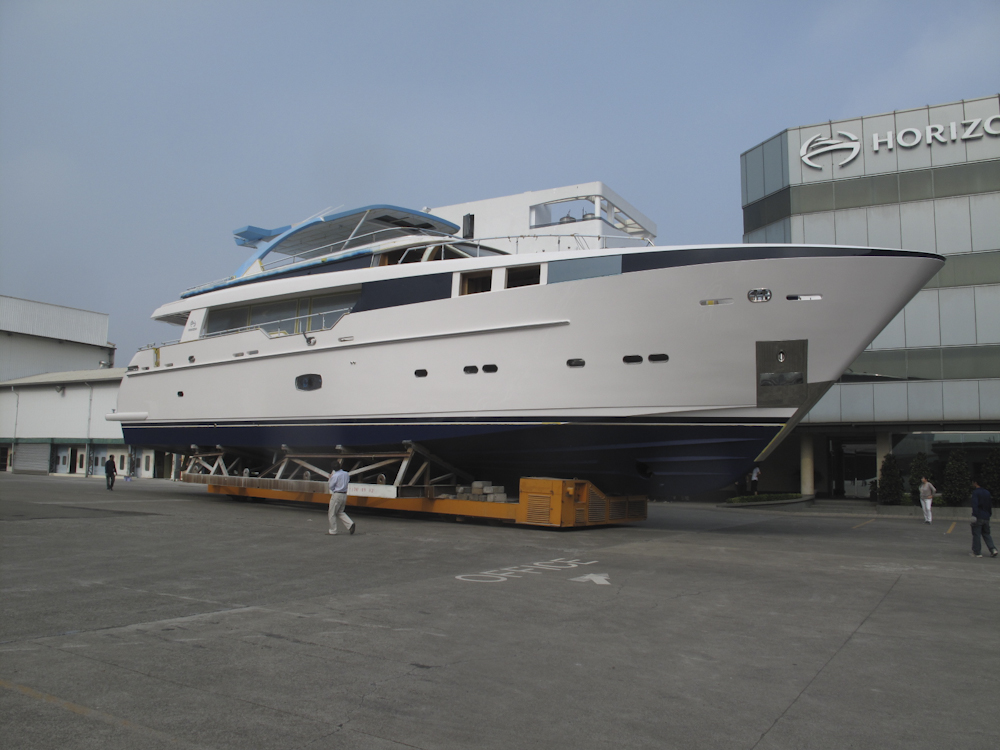 The new 33.5m/110ft motor yacht Project CC110-335 designed by the German company beiderbeck design for Horizon Yachts was launched in Taiwan. The German owner chose a custom design for this two-and-a-half deck superyacht, which is now his fifth Horizon. The stunning ocean-going yacht will be delivered to the Mediterranean in spring 2017.