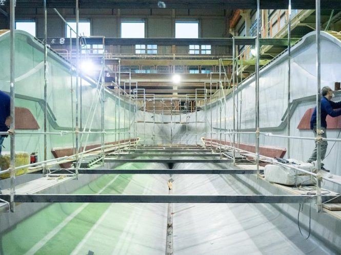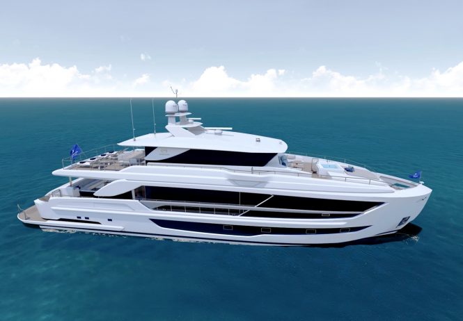 Measuring a total of 32.75m/107ft, the second FD102 hull will be built to the Skyline version and have a Fast Displacement Hull Form (FDHF) in addition to extensive customisation, which was an integral part of the contract with the American Owner, who has previously owned a motor yacht also penned by Cor D. Rover.