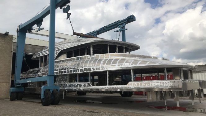 Moonen Yachts have released details about the construction of the 36.3m motor yacht YN199, the second hull of the Martinique series. The yacht’s superstructure and hull will be joined soon and an extensive outfitting stage is to follow.