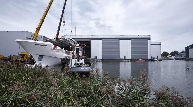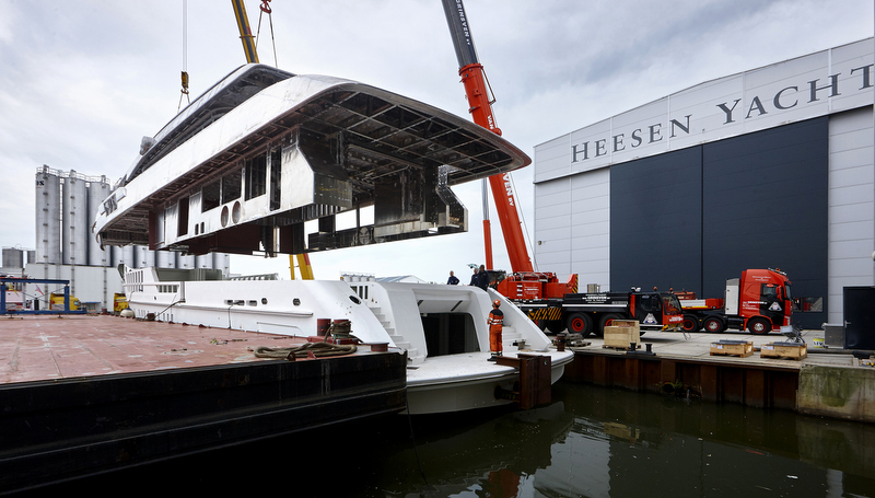 Hull and superstructure of YN 17755 motor yacht ALIDA by Heesen being joined together – Photo by Dick Holthuis