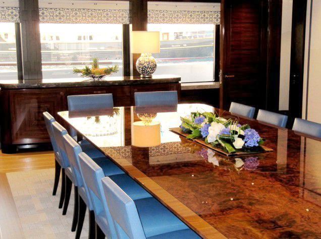 Expandable DB Fletcher dining table on aft Bridge Deck