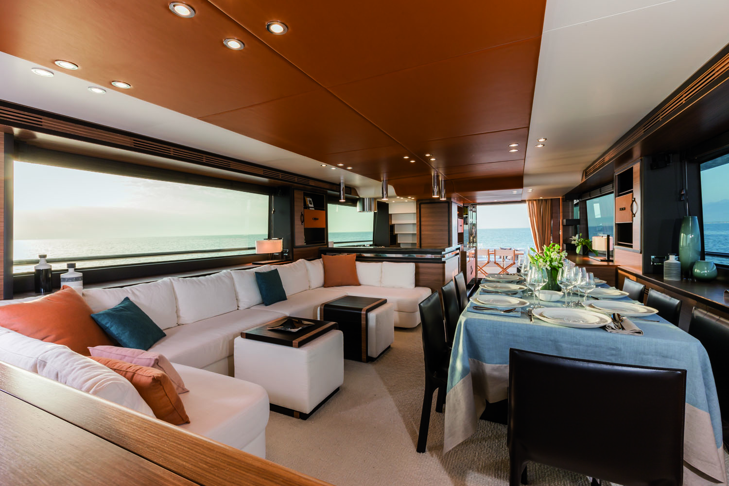 When compared to the Magellano 74 yacht, the new Magellano 76 model by Azimut is even more versatile in the use of space on board. The atmosphere on board is warm and welcoming, providing her guests with a feeling of a family boat. In addition, she offers the possibility of having a large aft area with two crew cabins, galley and laundry area.