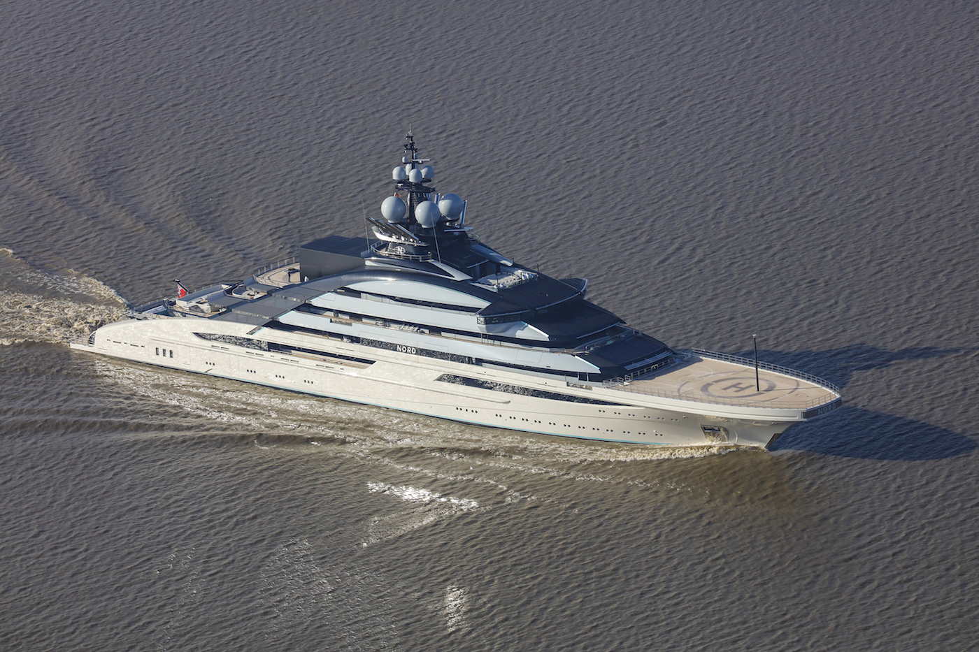 Measuring 141.6m or 464’6’’, NORD also boasts a very impressive beam of 19.5m ir 63’10’’. She is believed to have accommodation for up to 36 guests onboard over 20 magnificent suites with ensuite bathroom facilities. Some of the onboard features include a sundeck Jacuzzi, swimming pool a huge beach club, gymnasium, spa room with a sauna, helipads, an elevator and of course a large owners deck with a private study and amenities.