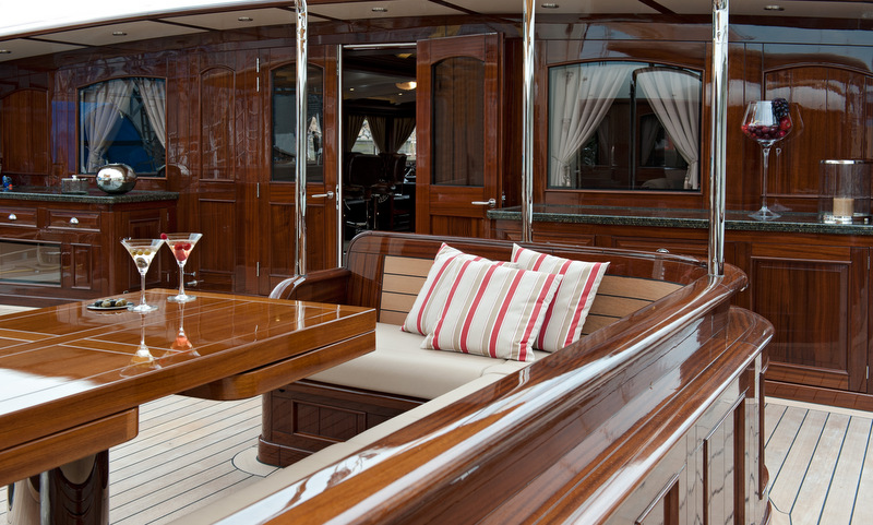 The main deck of luxury yacht MIKHAIL S. VORONTSOV is completed with three deck houses. The afterdeck house is a spacious and peaceful owners lounge, while the main saloon is positioned in the middle and is large enough for guests to enjoy everything the vessel has to offer. The pilot house can be found on the forward deckhouse.