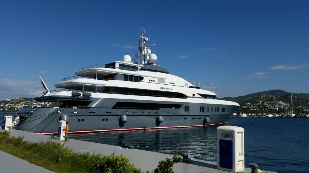Nestled in the popular Eastern Mediterranean yacht holiday location – Turkey, Palmarina Bodrum, also known as ‘the diamond of Turkish Riviera’ and the only mega yacht marina in the region, is currently hosting the impressive 73m motor yacht QUEEN K (ex Queen M). Boasting a sophisticated exterior design by Espen Oeino and a stylish interior design by Donald Starkey and Eidsgaard Design, luxury mega yacht QUEEN K was custom built in 2004 by Lurssen Yachts, with last refit carried out by her home yard in 2007, including a hull colour change and work on the yacht’s deck.