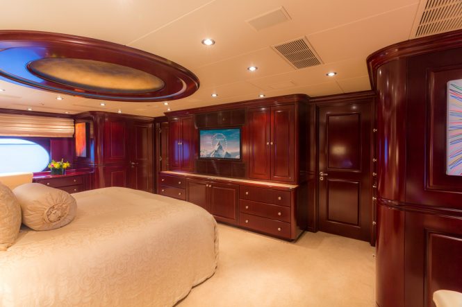 The accommodation sleeps up to 12 guests over 6 well-appointed en-suite cabins: 1 Master suite (King), 3 double cabins (King) and 2 cabins each with one double bed, one single bed and a Pullman berth. All cabins have TV entertainment, a large wardrobe and an en-suite bathroom with shower facilities. Each cabin includes Frette sheets and Matouk towels.