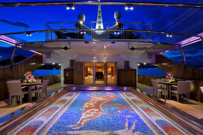 Previously chartered by the rich and famous, the yacht features elegant interior styling, vast outdoor spaces and total comfort onboard. Among Christina O’s outstanding features are a beauty salon, Jacuzzi, massage room, gymnasium, library and a great selection of water toys.