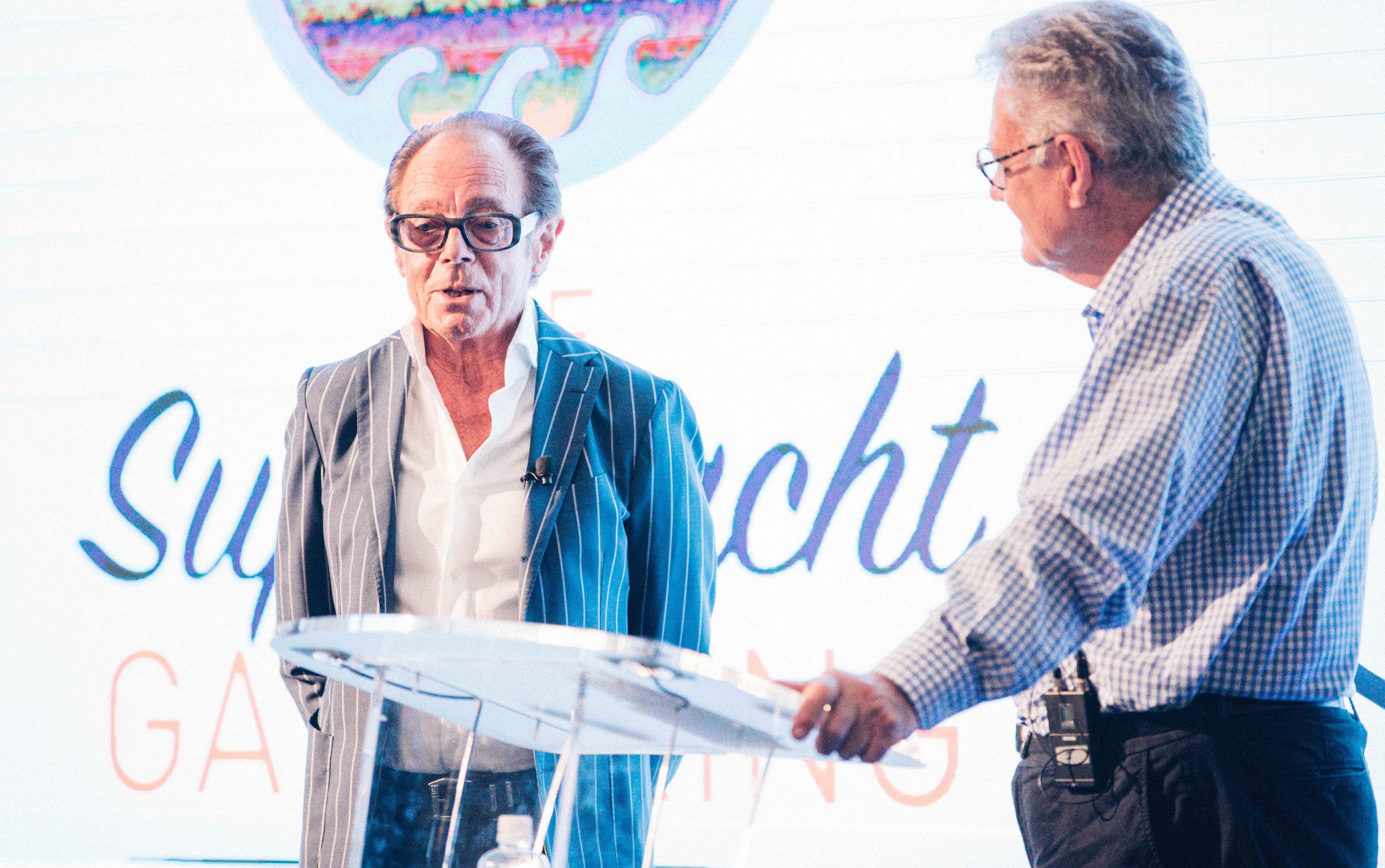 The second day was dedicated to stories relating to the oceans and superyacht industry, with Master of Ceremonies Peter Montgomery leading the talks on topics including ownership, technology and innovation, altruism and travel on the waves. With an emphasis on ‘challenging the norm and stepping out of comfort zones’, guest speakers included Sir Michael Hill, Tracy and Mike Mahoney, the owners of S/Y TAWERA who talked about hands-on skippering, and Neville Crichton with Peter Montgomery on the changes and innovations to yacht builds throughout his career.