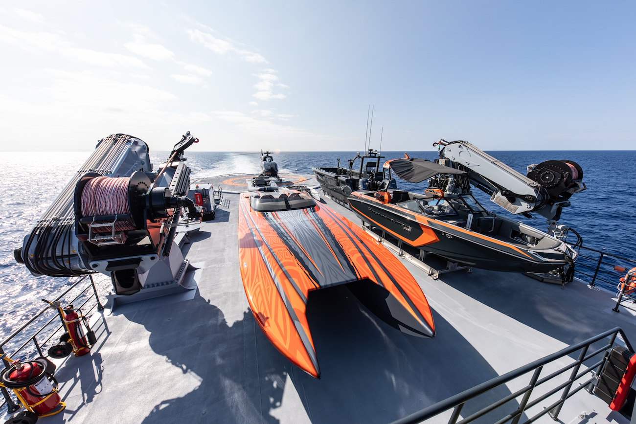 Shadow Cat named HODOR, delivered to her owner, is the first of its kind built by Incat Crowther to enter the world of luxury yachting by the company. The support vessel’s layout offers a great amount of space on board, flexible layout, cruising capability, comfort and efficiency. Her stable platform provides for a safe transfer of guests from a helicopter to the mothership, via tenders.