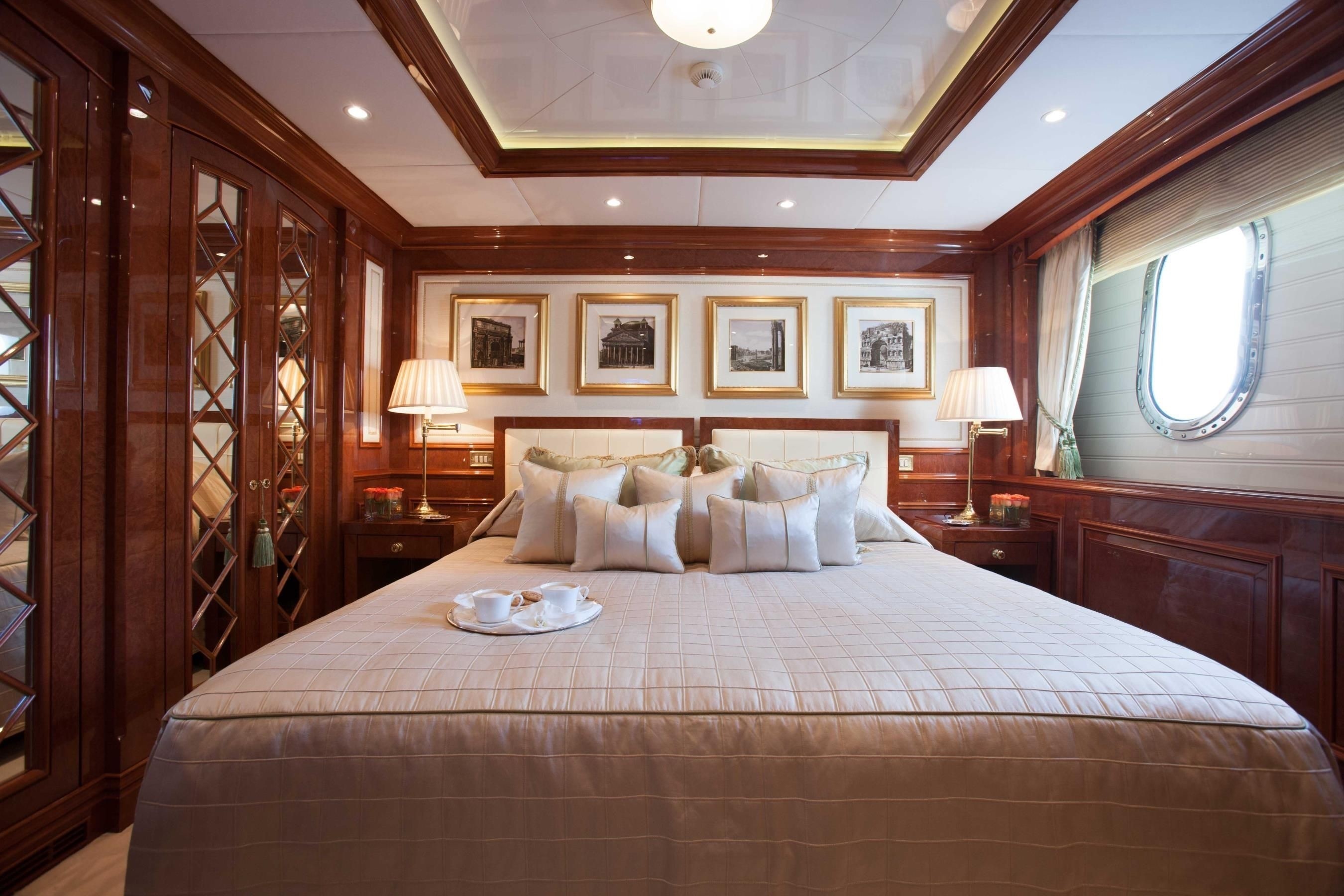Her master suite is situated forward and full beam of the yacht, with panoramic windows and a private lounge.