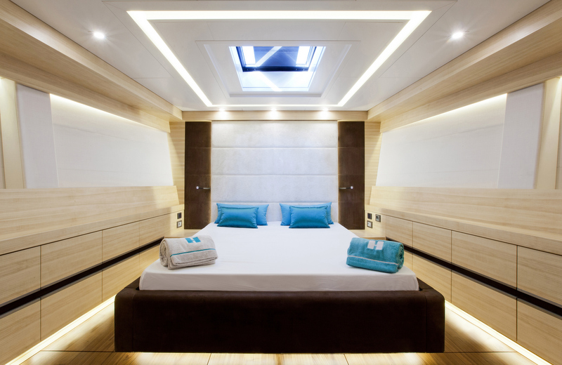 WallyCento luxury yacht Hamilton boasts 3 beautiful and comfortable cabins for up to 8 guests. There is a large master stateroom, along with two guest cabins, all with en-suite. Hamilton also features air conditioning, a fully functional galley and entertainment systems.