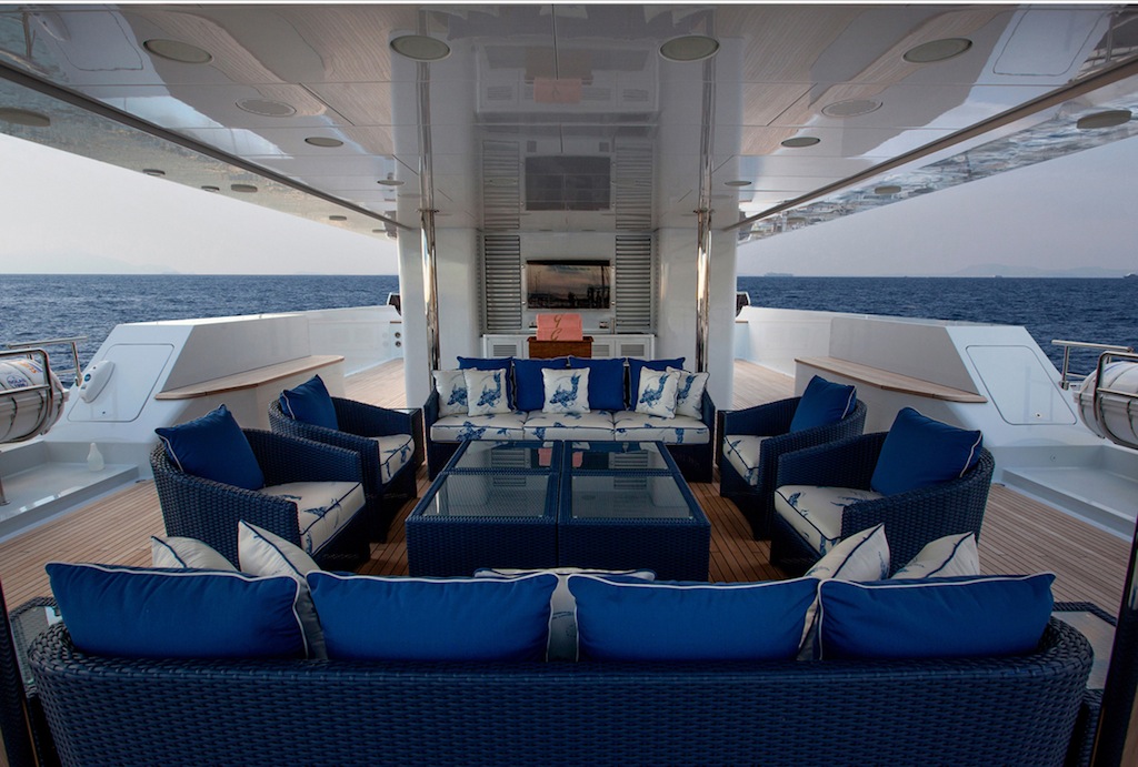 All the exterior areas provide great space for relaxations, social gatherings, sunbathing or al fresco dining. The inviting relaxation area on the Main Deck aft cockpit alternates with the alfresco dining area on the aft Bridge Deck, which is able to seat 12 guest. The Sun Deck, that is also connected by the elevator, boasts a large sunbathing area, a seating area, a bar corner and then a large Jacuzzi bathtub, for five/six people, provided with comfortable sunbathing mattresses.