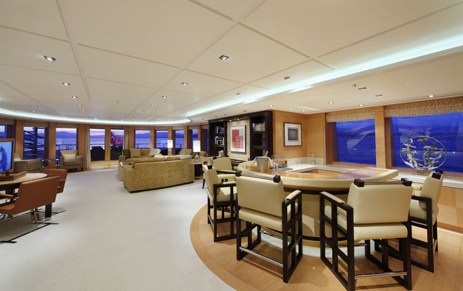 The Glade Johnson created interior is very generous and warm, combining elegant classical details with a range of contemporary elements. The main and upper deck of Solemates are filled with natural light offering her charter guests immense spaces for formal dining inside or a more casual al fresco dining. There are also excellent spaces for relaxation, TV watching or playing games.