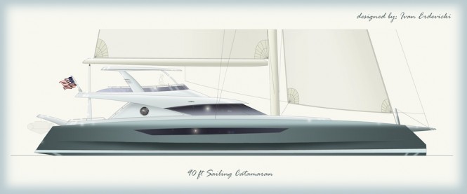 The  Ivan Erdevicki designed 90 ft sailing catamaran yacht was designed for Seattle based Client from USA. The Client intends to sail the boat around the world with his family. The boat accommodates 14 people in 7 separate cabins. It has a large open salon with big galley. There is a walk-through access to mast area cockpit through full size access watertight door at the forward windshield area of the salon.  The flybridge steering station in addition to pilot house steering, ensures comfortable and safe handling of the boat in all weather conditions.