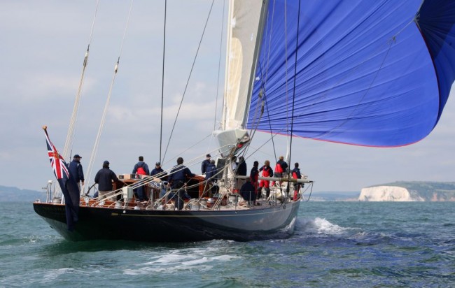 Classic Sailing Yacht Valsheda arrives for the JP Morgan Asset Management Round the Island Race - photo by onedition