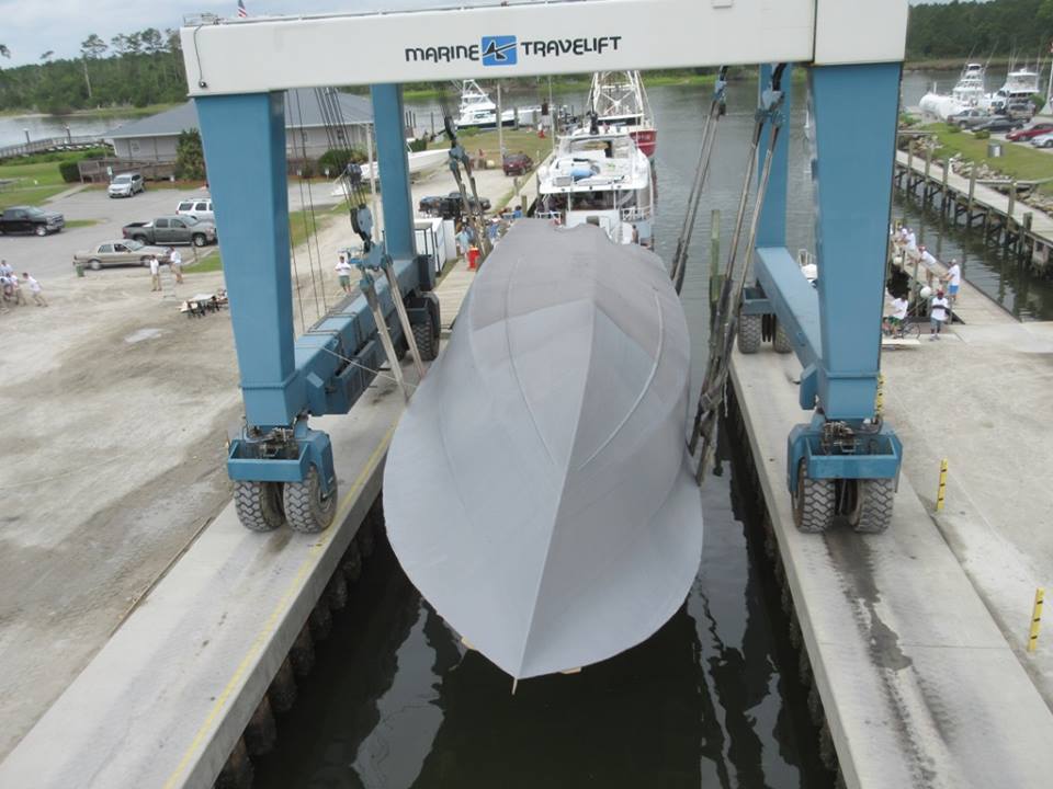 Yesterday morning, June 25, 2015 saw the US shipyard, Jarrett Bay Boatworks, flip their largest custom built hull to date – the 90’ Hull #62 sportfishing superyacht IRELAND (project name). Due to be delivered in 2017, the Jarrett Bay 90′ motor yacht IRELAND has been designed to reach the remote fisheries of the world in supreme comfort and style.