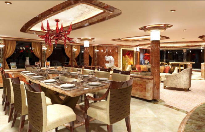 Trinity Yachts Lady Linda Yacht is powered by two Caterpillar 3516C HD 3,384hp engines to a maximum speed of 20 knots and can cruise at 18 knots. Her range is of 3,800 nautical miles at 10 knots or 3,000 nautical miles at 12 knots.