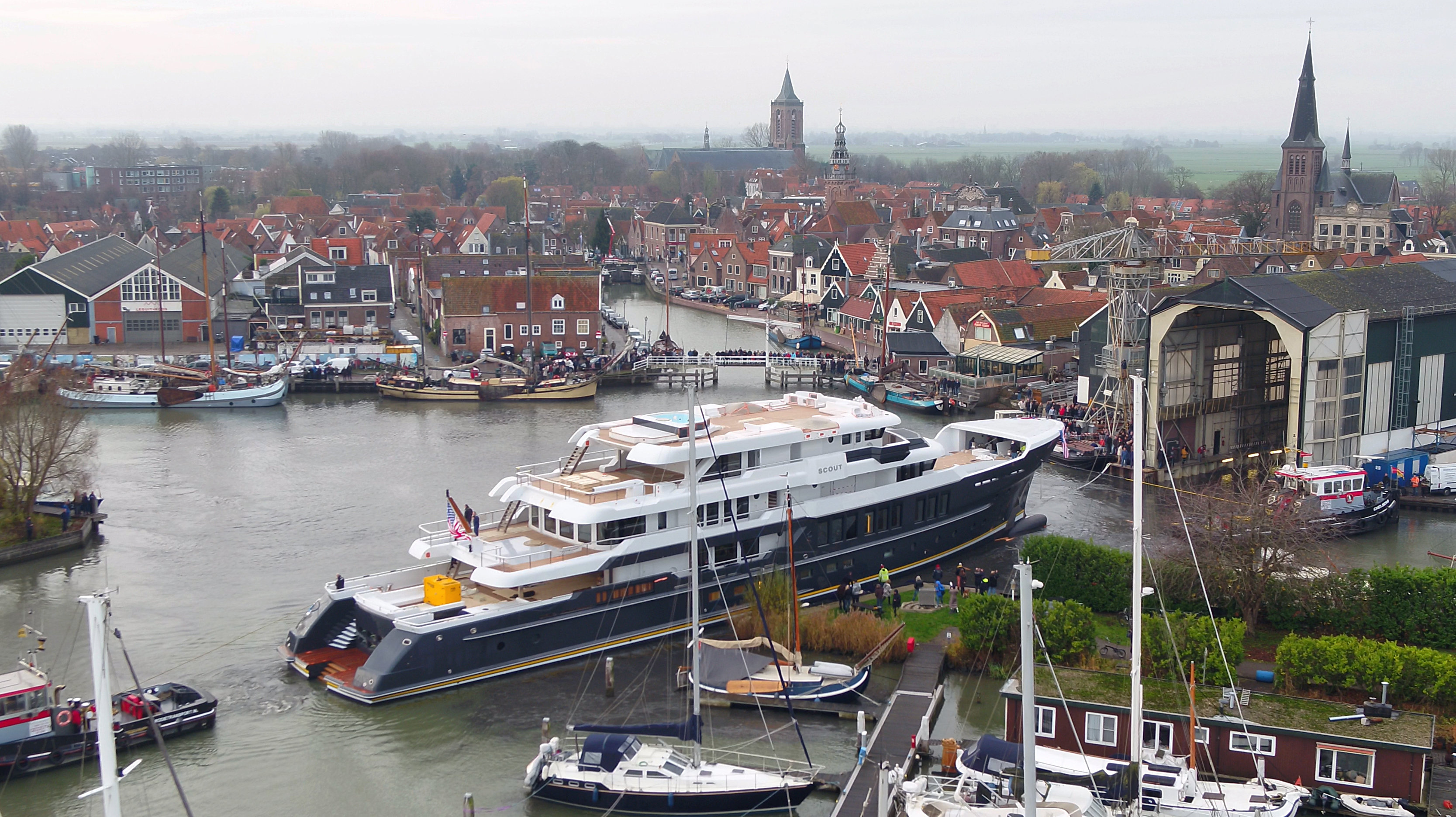 Spreading 63.72m in length and 11.6 metres in width, with a draft of 3.25m, SCOUT hit the water on the 1st of December, in Monnickendam in North Holland. She was moved to Amsterdam for final completion, which will include the installation of her mast, crow’s nest, radars, stabilisers and propellers.