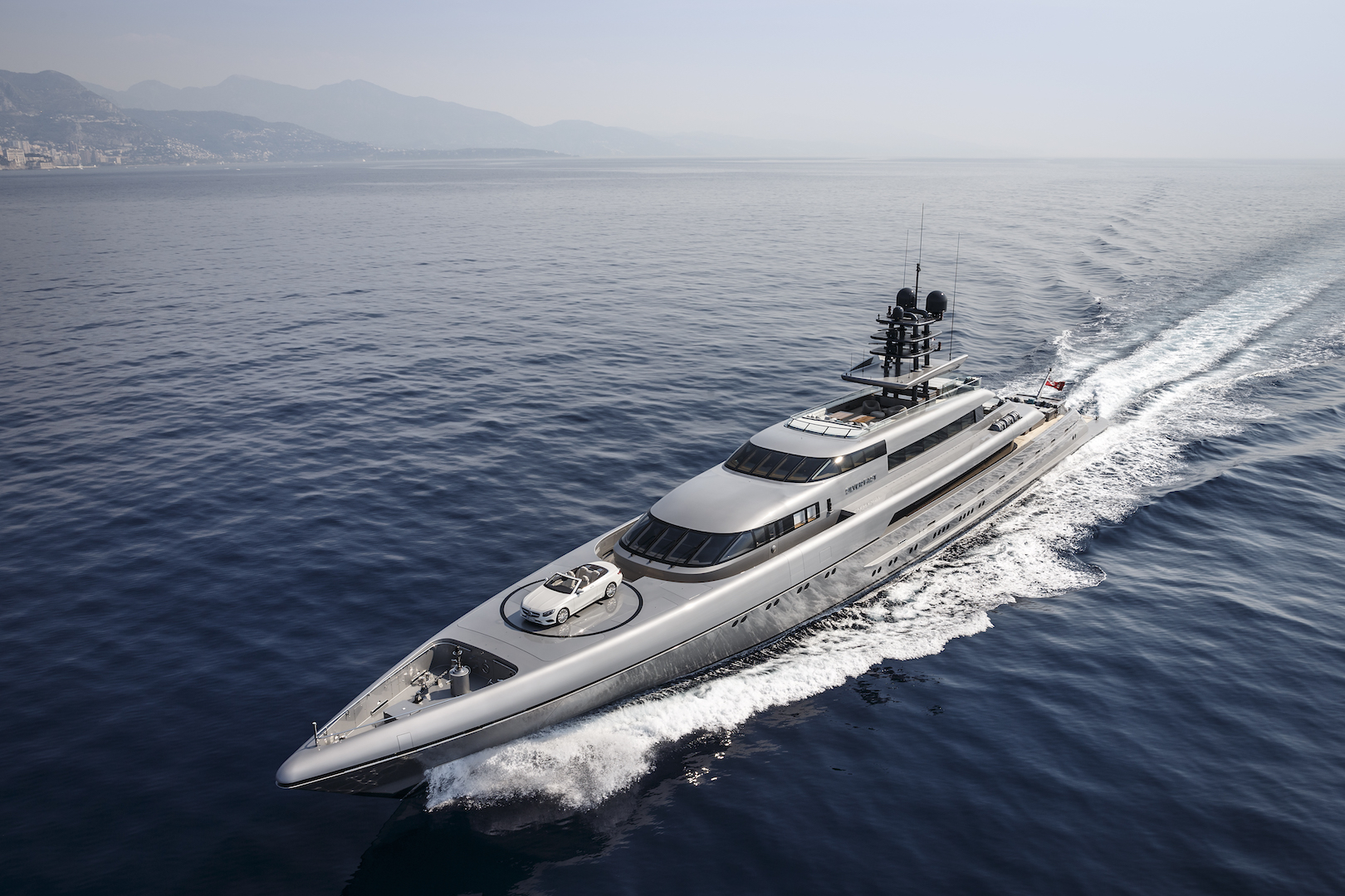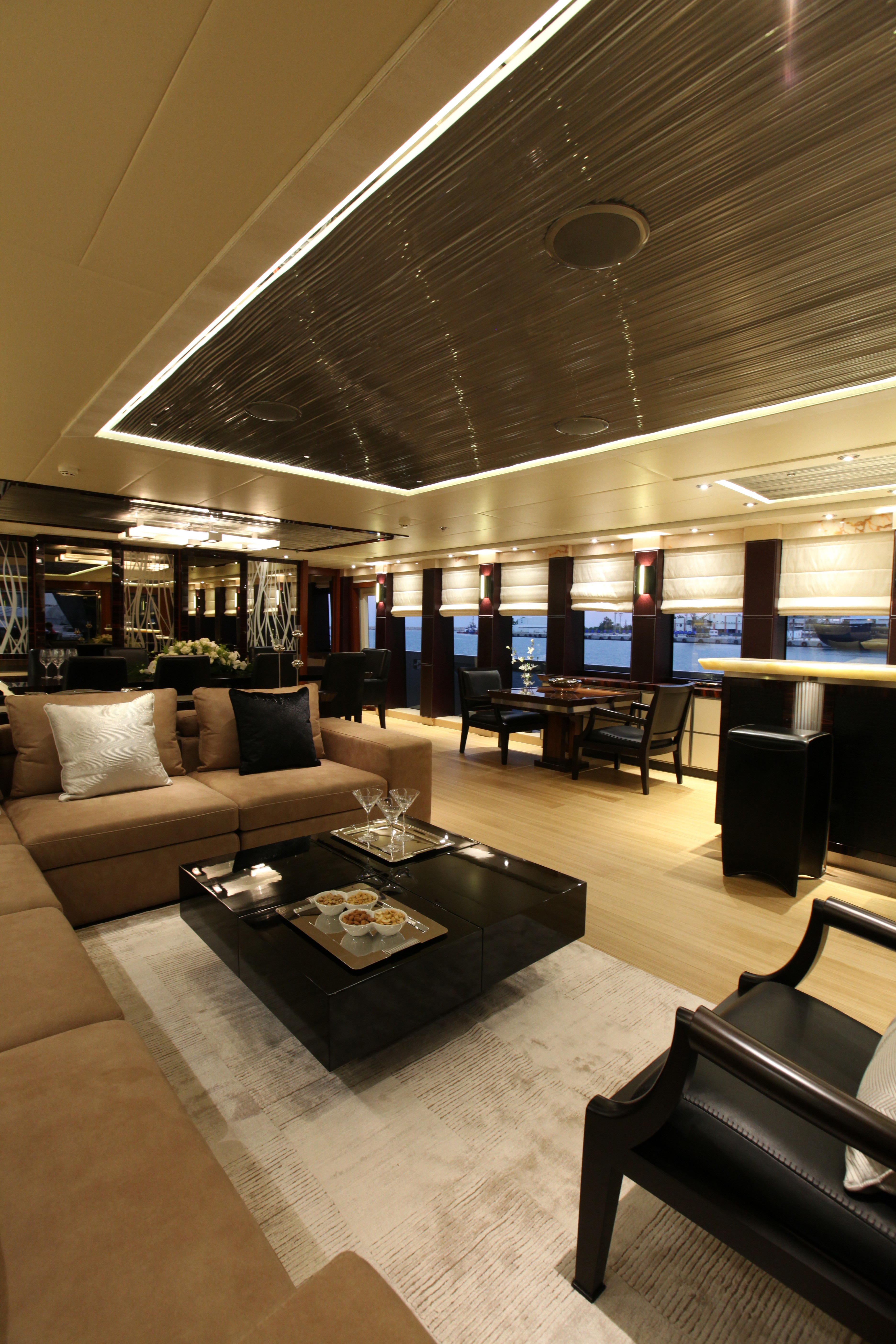 The generous exterior spaces are designed to be enjoyed by guests and visitors at any time of the day, offering an eight-person Jacuzzi, broad sun lounging sections, sun-drenched alfresco dining areas and a helipad on the bow.