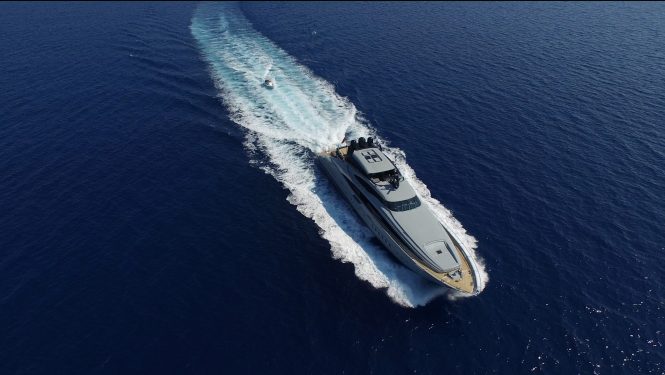 LOA: 34m/112ft ǀ Built: 2015 ǀ Guests: 8 ǀ Cabins: 4 ǀ Crew: 6 ǀ Notable features: Sundeck Jacuzzi