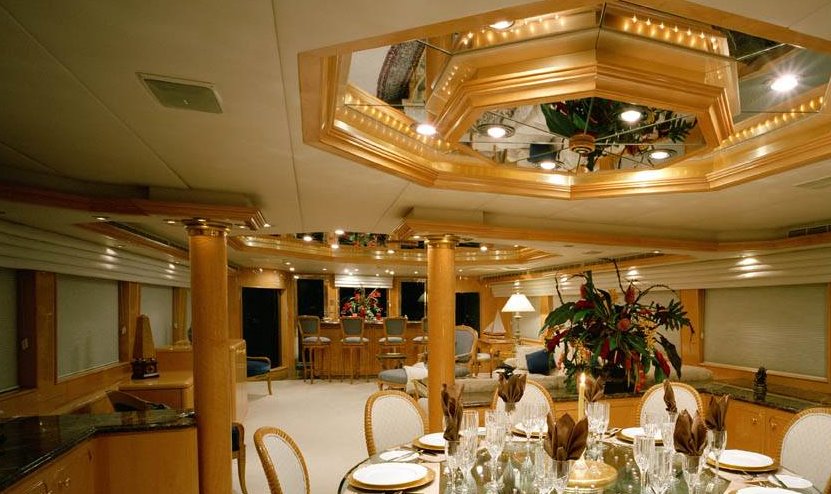 Each room aboard motor yacht CHARISMA offers the guests something different, from the stately cream-white lounge to the dark panelled formal dining area and the invigorating accents of the guest accommodation. Outside is a celebration of colour and comfort where guests can rest on the sofas with a cocktail from the wet bar while watching a film in the moonlight or enjoying the view from the sundeck Jacuzzi.