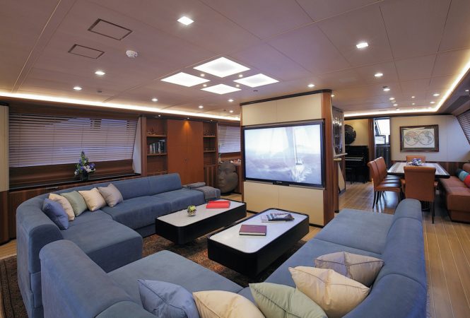 LOA: 47m/150ft ǀ Built: 2007/2014 ǀ Guests: 10 ǀ Cabins: 5 ǀ Crew: 8 ǀ Notable features: Sundeck Jacuzzi, indoor cinema