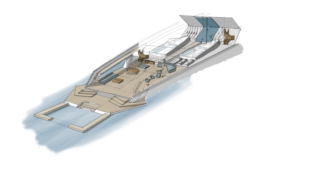 The studio’s method always is to refine their knowledge and understanding of all the singular systems that comprise the architecture of the yacht. Such as; tender launching systems, fuel systems, the exact and precise layout of the furniture on the terrace, even something as benign as a conventional staircase.