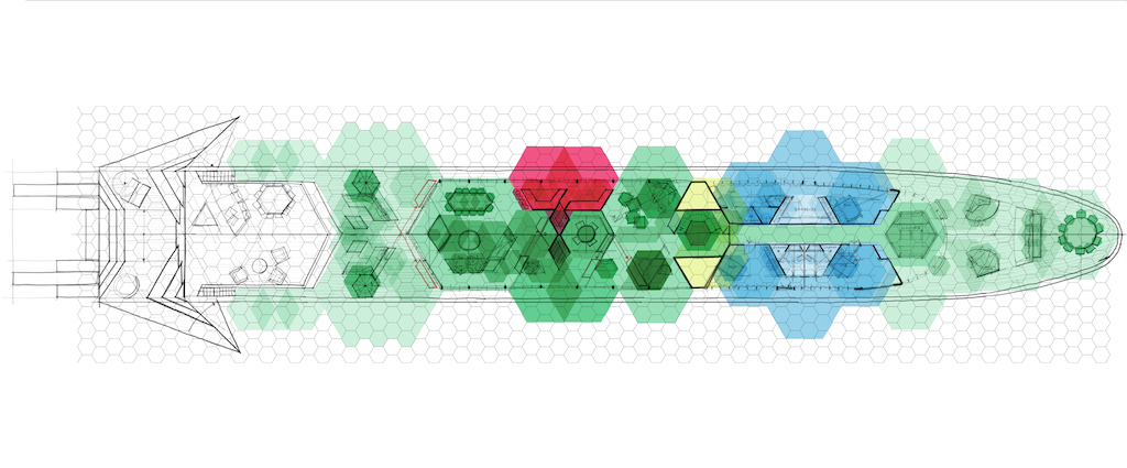Traditionally yachts are built using transverse and longitudinal beams, X-Kid stuffs’structure itself is hexagonal, and interior design is matched to the structure, that way walls, windows etc are always located in a correct and convenient position between structure. The design exploits the beauty of the hexagon form and puts into good use with a modular arrangement of walls and furniture resulting in a very useable, practical interior arrangement.