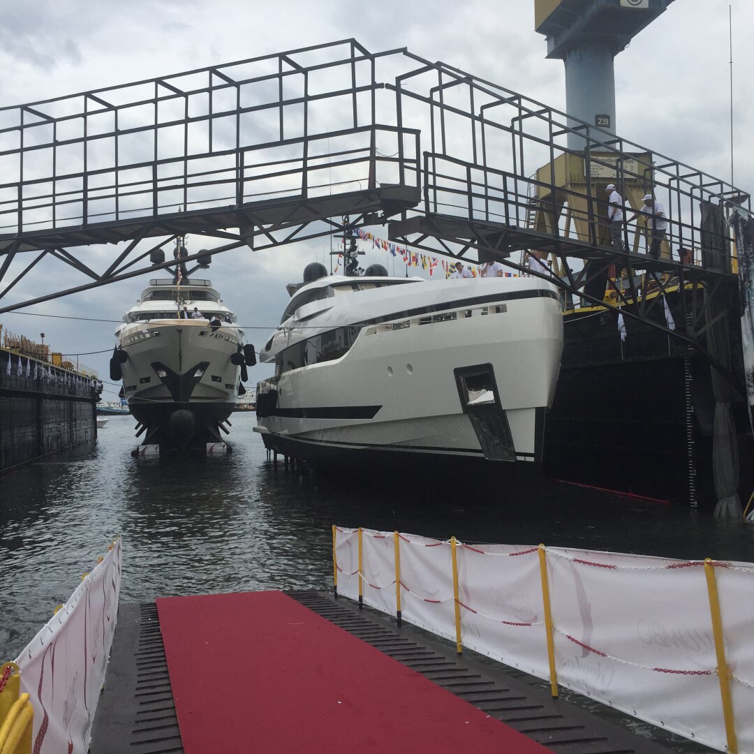 Last Saturday, May 16, 2015, saw the Italian builder Columbus Yachts, part of the Palumbo Group, host the launch ceremony of the all-new motor yacht Classic 57m as well as the second 40m Sport Hybrid yacht. Both of these luxury superyachts will be officially presented to the public at the 2015 Monaco Yacht Show in September. Below are the photos from the launch, released by the shipyard.