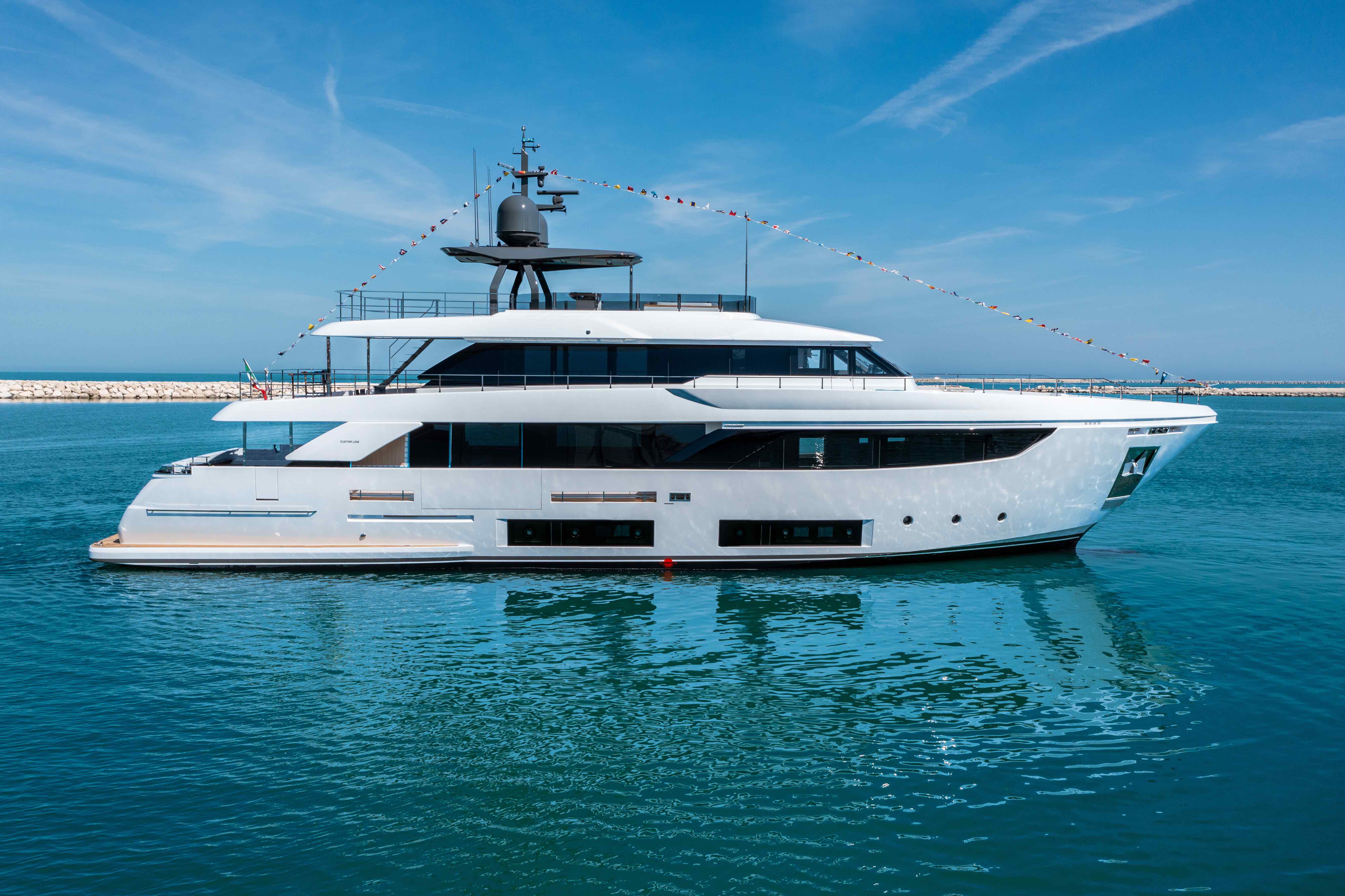 From the Ferretti shipyard in Ancona in Italy comes news of the launch of 33m (108’2”) motor yacht FAMILIA. This made-to-measure Custom Line Navetta 33 has been designed in close collaboration with her new European owner who wanted a superyacht designed to accommodate the lifestyle of their entire family.