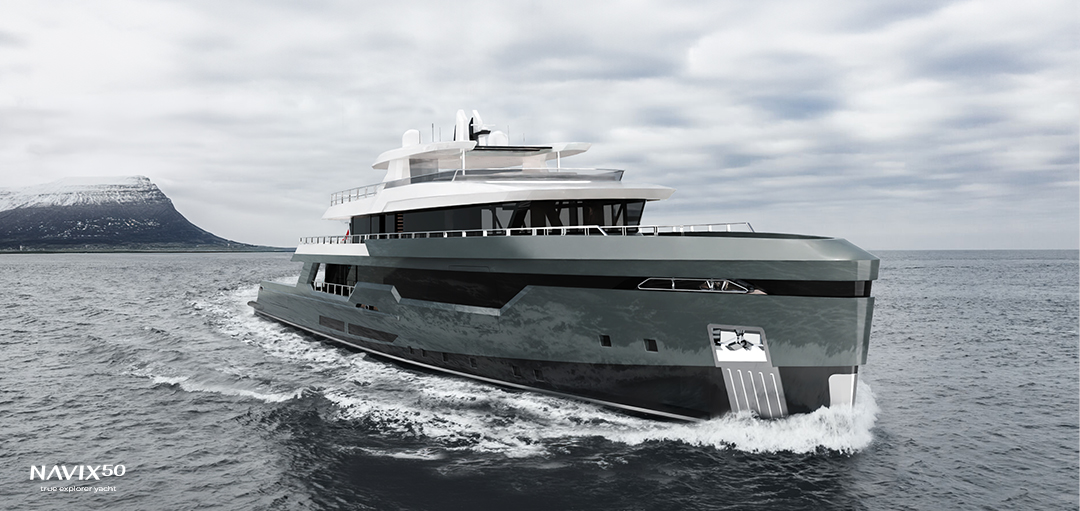 Superyacht NAVIX50 is a more compact evolution of NAVIX 60, the shipyard previous design, and is characterised by robust construction, exceptional range and innovative design, providing a superior adventure experience while maintaining luxury and performance.
