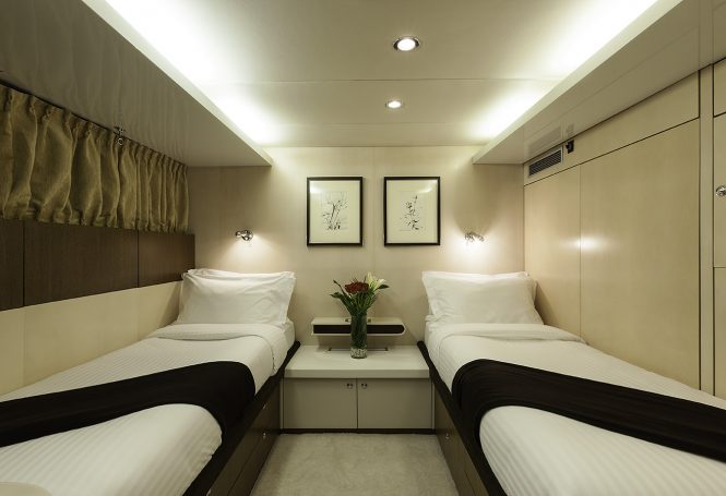 Her expert crew is comprised of an onboard dive instructor, a masseuse and a jet ski instructor on board, ensuring that guests have plenty of opportunities to learn new skills and unwind in style throughout their time on board.
