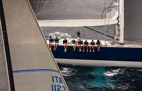 The Performance Class was first away with the Italian 30.5m Wally Indio leading the charge up into bomb alley with the smaller but more thoroughbred racer, Highland Fling, pulling up through the fleet. The Cruising Class then set sail at one minute intervals with the highest rated boat, the Wally 148 Saudade first away.