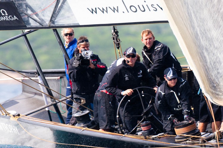 Louis Vuitton Trophy: Dean Barker at the helm of Emirates Team New Zealand (NZL), Photo Credit Bob Grieser