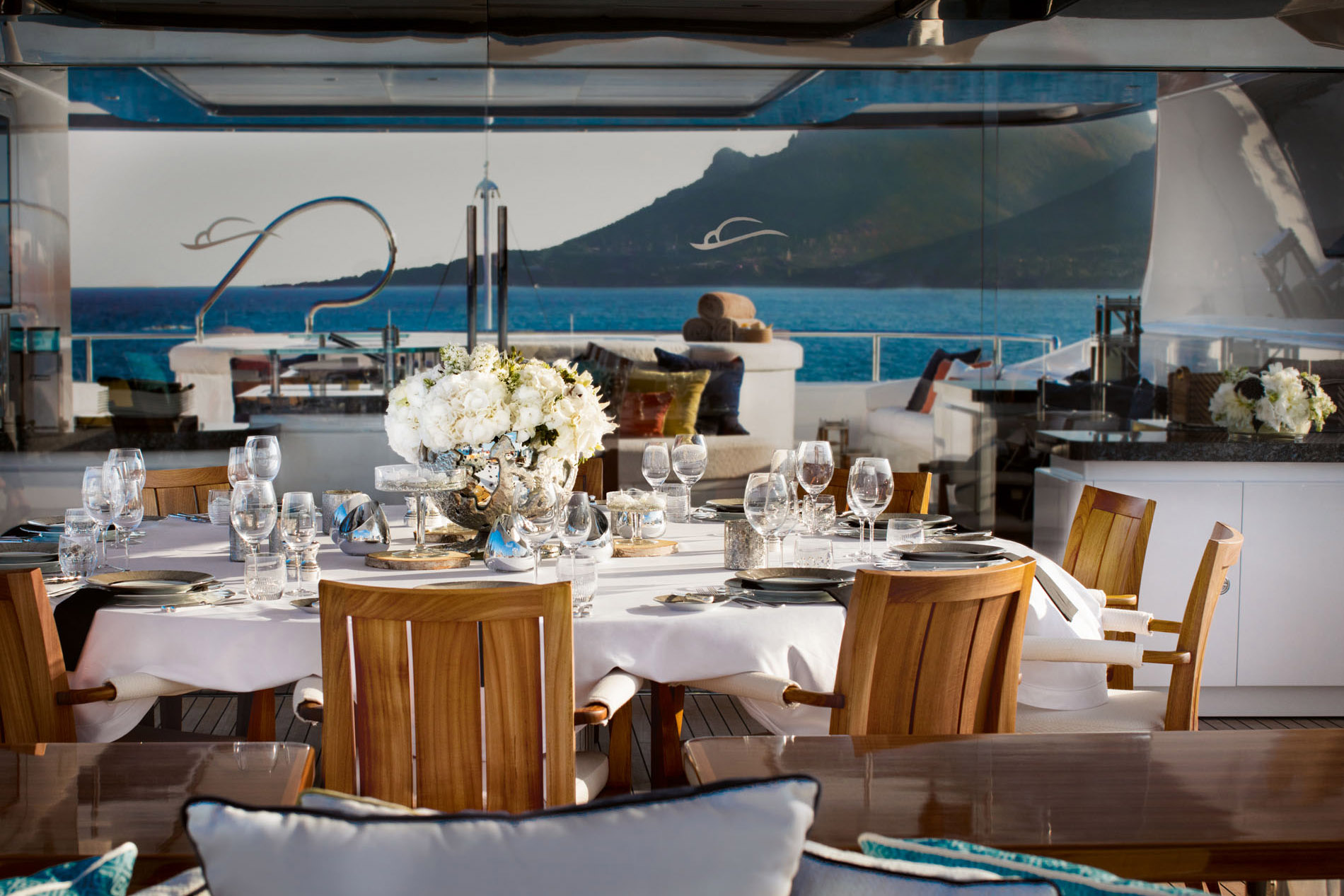 This is to say nothing of the beautiful beach club with Espresso bar, the 14m/45.9ft water slid or the extensive collection of water toys for use along one of the beautiful beaches within the Tuscan archipelago. Fishing, diving and snorkelling equipment are all on board for making the most of each and every stop along the coast, and there is a helipad for quick transit between airports as well as taking in the surroundings from a bird’s eye view.