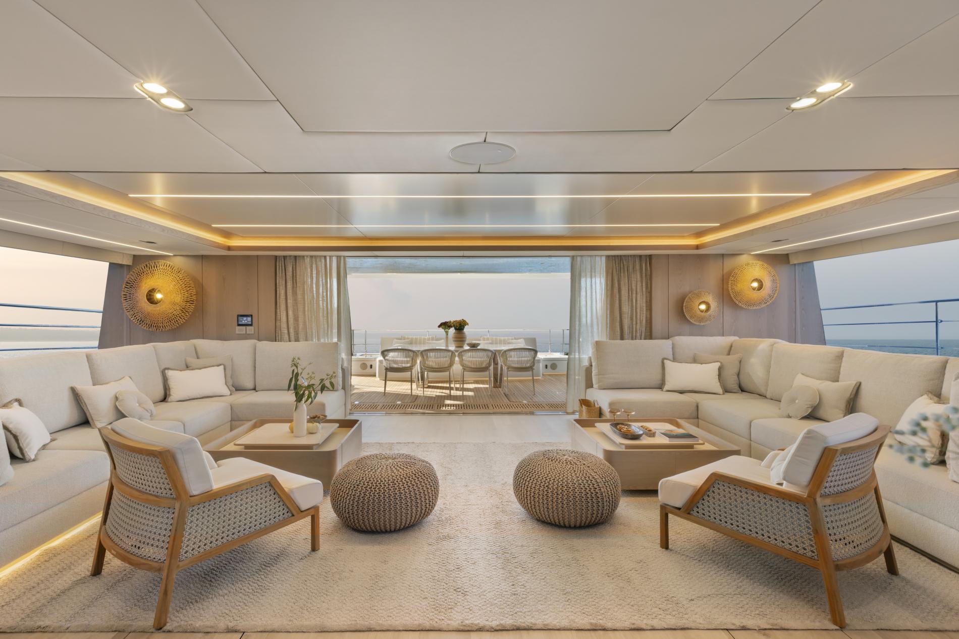 Cruise into the Caribbean sunset aboard luxury yacht GOOD DAY SUNSHINE, a brand-new Power Cat 80 from Sunreef. With a length of 23.95m (78′ 7″) and beam of 12.19m (40′) there is plenty of space for the eight guests on board to unwind in pure luxury.