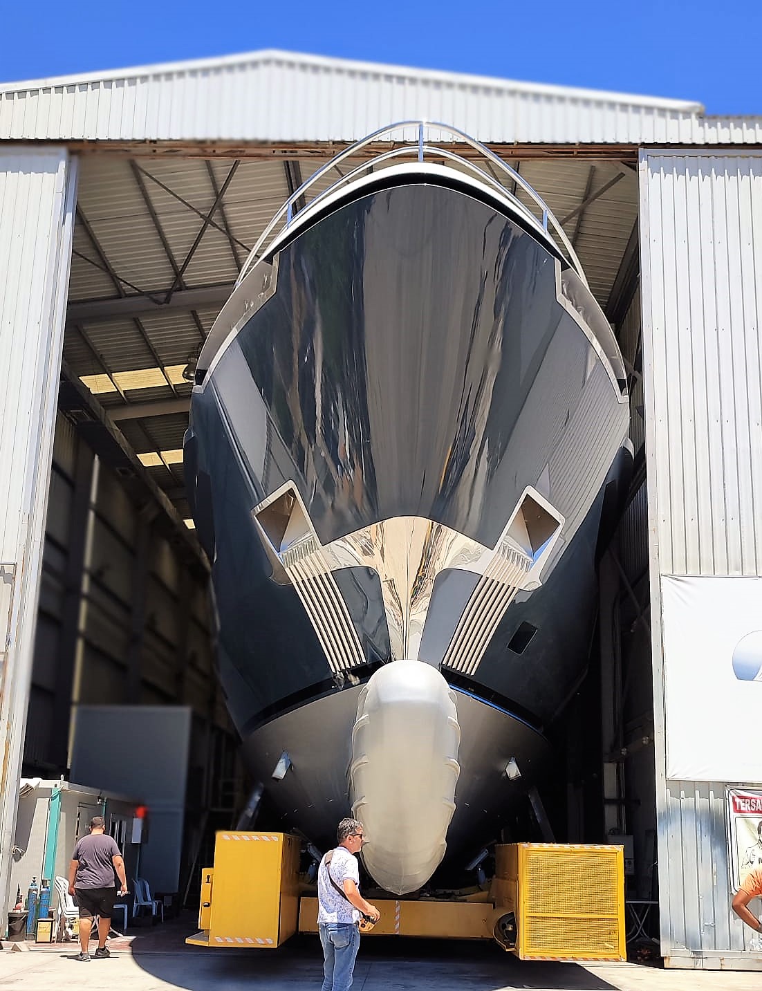 The explorer yacht is now out in the open, showing off her freshly painted hull before outfitting is completed and she is delivered to her Owner.