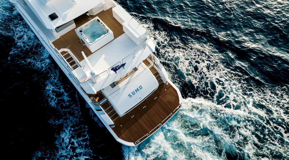 M/Y SUMO has a top speed of 17 knots, and a cruising speed of 10 knots for island-hopping around the Great Barrier Reef, the Kimberleys and other destinations in the South Pacific charter grounds and beyond.