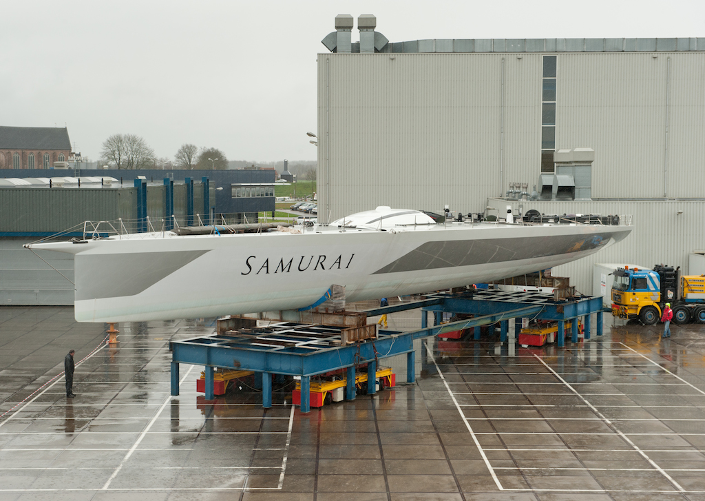 Onboard systems that the original race boat lacked (including alarm, monitoring, entertainment and navigation equipment) are being installed and high-speed hydraulic winches will substitute the manual winches. Her canting keel will be replaced with a lifting keel more suitable for cruising and access to shallow anchorages, in addition to a lightweight anchor system with a removable davit. The Huisfit team is well prepared and fully equipped to work with carbon composites where optimum performance is the driving factor (Royal Huisman is also building a 20m/65ft sailing yacht with carbon composite hull, deck, spars and standing rigging, its 35th project with Sparkman & Stephens).,As the hull and rig of SAMURAI yacht have remained largely intact, after being thoroughly checked using laser and ultrasound equipment, the focus of the Huisfit team has been on modifications to the deck and interior composite structures.