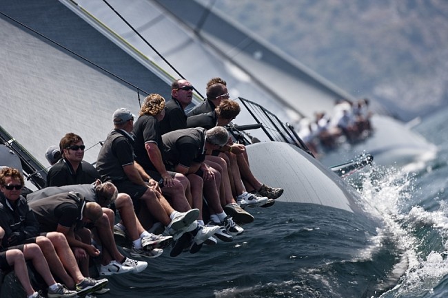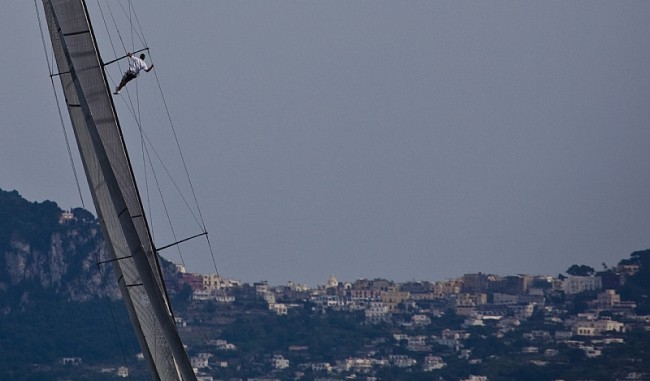 Crew climbs mast of ALEGRE on their way back to the Marina Grande after the coastal race ALEGRE owner - Andy Soriano class - MINI MAXI ROLEX Carlo Borlenghi