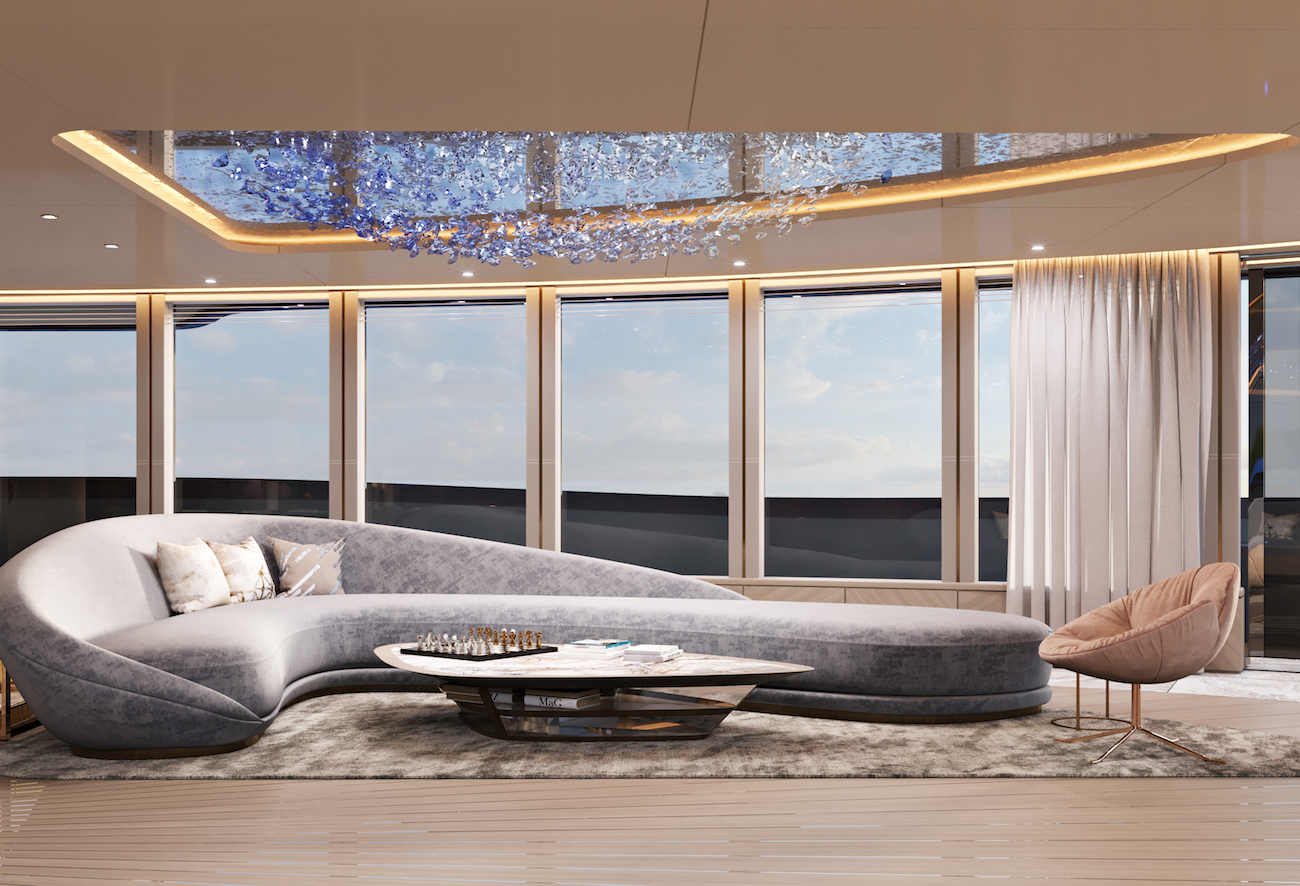 From luxury yacht designer Christopher Seymour in collaboration with design consultant Carl Esch comes the Beyond Series, starting with 82m/269ft concept superyacht BEYOND, boasting a swimming pool, numerous Jacuzzis and a glamorous interior design from Theodoros Fotiasdis.