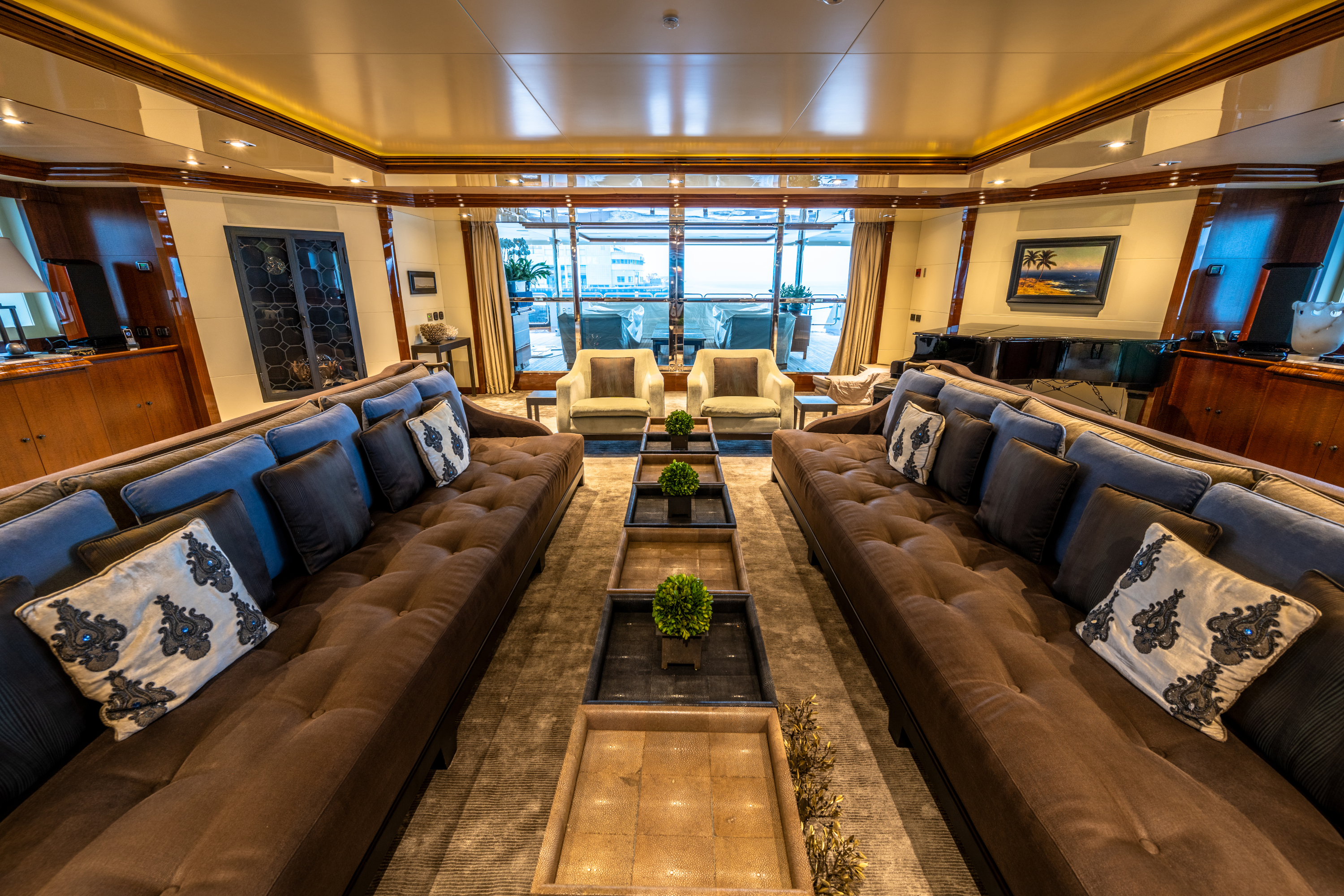 Built by well-known shipyard CRN Ancona and naval architects and designers Nuvolari Lenard, luxury yacht ARBEMA is a spacious vessel with warm and inviting interiors that have the atmosphere of a Gentleman’s yacht: Dark furnishings fit perfectly with the warm wooden panelling timeless artwork within. Benefits include a massage room and TV room with direct access to the Master suite, which can be locked off for the occupants’ privacy while other guests use the aforementioned facilities.