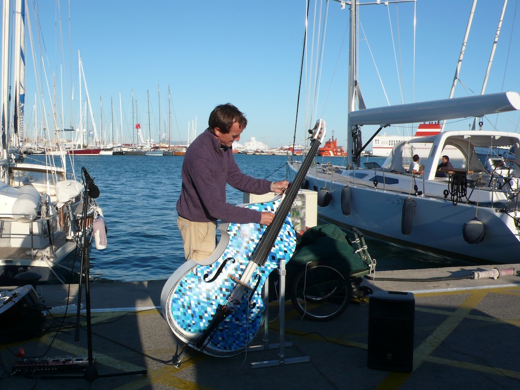 A full-house barbecue has taken place at the Marina Port de Mallorca, hosting captains, crew and harbour employees. Among the guests was Thierry Petit, double bassist of the National Orchestra of Montpellier. Currently mooring at Marina Port de Mallorca, the musician has has taken to the waves in his culture-unifying project “La Contrebasse Voyageuse en Méditerranée” (The Travelling Double Bass in the Mediterranean)