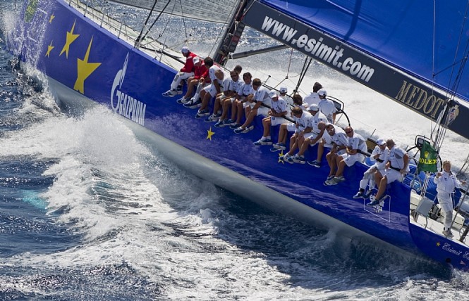Slog is a relative term. Esimit completed the course in 2 hours 52 minutes. Whilst skipper Flavio Favini was happy enough with that, it was not enough to hold off the relentless challenge of Irvine Laidlaw’s Highland Fling that levelled the series with a four-minute corrected time victory. Favini’s view of the day: “I think we have had a good race. Our manoeuvres were good, but I think we could have done a bit better on the run downwind from Secca di Tre Monti to Palau. We may have made some mistakes regarding wind shifts, but this aside I think we have sailed the boat well today.” Favini is no greenhorn and knows full well that he has a weapon of extraordinary power in his hands, which occasionally reflects in the approach, “considering that the boat is very big and goes very fast, sometimes we may be a bit conservative and try not to take risks in the narrow passages.” Experience shows time and again in these waters that knowing when to reign back can avert a rig loss or worse still, an encounter with the many rocks hidden beneath the surface.