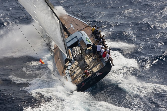 Rán is one of the biggest Racing mini maxis competing here; only the Bill Koch chartered Titan XV (USA) is longer. Powell feels short sharp windward-leeward courses are harder on boats of her size than some of her smaller sisters, “it is tough on the crew and quite demanding on a boat like Rán with the sail hoists and changes. We used the same jib and spinnaker all day, but we are talking big bits of gear to get up and down at each mark rounding.” A coastal course is scheduled for tomorrow and Powell is hopeful that that will advantage Rán in her quest to reel in Alegre, “we are looking at anything between 10 and 30 knots tomorrow according to the forecasts, but we’ll be going up through the islands, I expect. That will give us a chance to stretch her legs a little bit and boat speed may pay out for us.” Given Alegre has proved herself previously over long distances (she was overall winner at Rolex Middle Sea Race in 2009) and clearly has the bit between her teeth this week that may be wishful thinking.