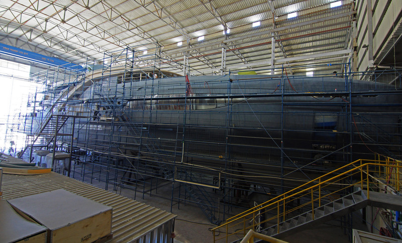 Once completed, super yacht EUPHORIA will easily sleep up to 10 guests in the beautiful and lavishly appointed staterooms. There will be also accommodation for a crew of 10 members. EUPHORIA will by run by twin MTU diesels, expected to comfortably cruise at 12 knots.