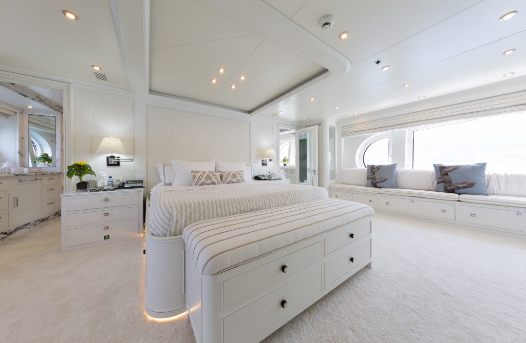The on board accommodation layout is designed for up to 10 guests over 5 cabins: 1 Master suite, 2 VIP staterooms and 2 twin cabins with Pullman berths. A crew of 10 will ensure that every guest is well taken care of throughout the charter.