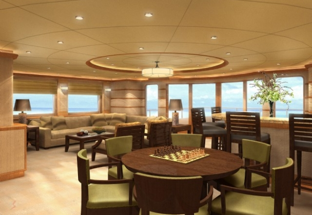 The 33ft beam custom Trinity Yachts MotorYacht Mi Sueño will be exhibited for the first time at the 2010 Fort Lauderdale Show. The 191′ (59 m) semi-displacement aluminium-hull superyacht’s style can be defined as urban-contemporary, featuring overtones of Zen. Her interior boasts a blend of elaborate wood creations and exquisite natural material with upscale luxury and comfort in authentic Patrick Knowles Designs’ style.